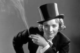 Otro elemento de la femme fatale es la voz sexy y profunda, que luego casi caricaturiza Marilyn Monroe. Toma whisky; y en particular, La Dietrich vestía como hombre, y sus poses y actitudes entre etéreas y andróginas nos dejan tan maravillados y seducidos que no lo cuestionamos.